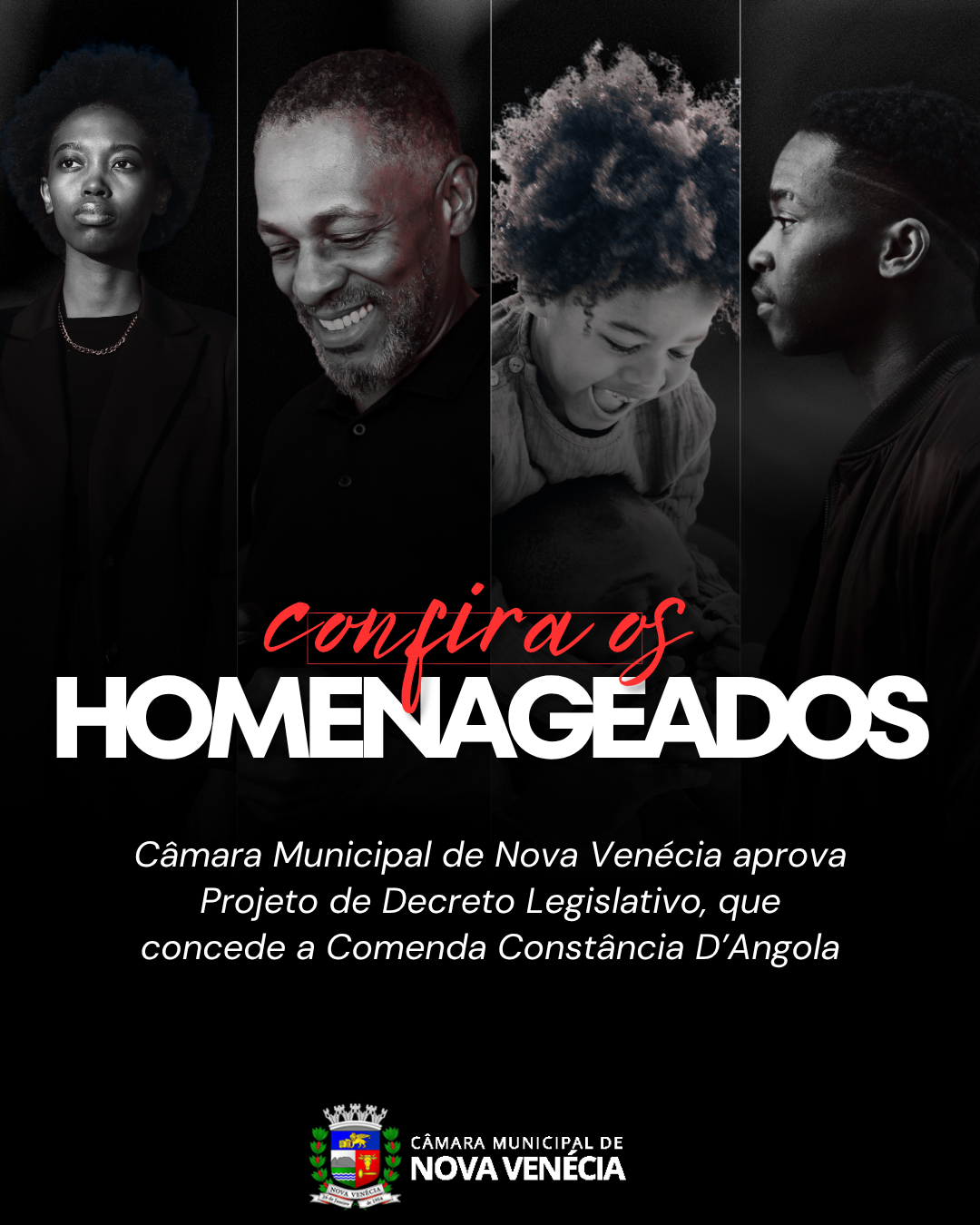 A Câmara Municipal de Nova Venécia aprovou na última sessão ordinária, dia 04, o Projeto de Decreto legislativo N° 71, que concede a Comenda Constância D’Angola, a 13 homenageados, de autoria da Mesa Diretora.
